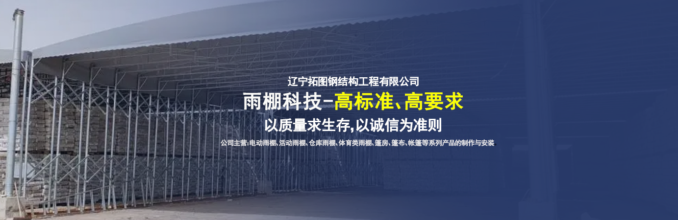 遼寧拓圖鋼結(jié)構(gòu)工程有限公司是一家專業(yè)從事推拉篷設(shè)計、制作、安裝、使用、維修的綜合性公司。公司主營:電動雨棚、活動雨棚、倉庫雨棚、體育類雨棚、篷房、篷布、帳篷等系列產(chǎn)品的制作與安裝。 遼寧拓圖鋼結(jié)構(gòu)工程有限公司堅持以市場為導(dǎo)向,以科技創(chuàng)新為動力,以質(zhì)量求生存,以誠信為準(zhǔn)則,倡導(dǎo)求實、進(jìn)取、創(chuàng)新的企業(yè)精神。“科學(xué)的管理、嚴(yán)謹(jǐn)?shù)脑O(shè)計、 的制作安裝、嚴(yán)格的質(zhì)量檢測、良好的后期服務(wù)成就企業(yè)的信譽,為您提供優(yōu)質(zhì)服務(wù)。 遼寧拓圖鋼結(jié)構(gòu)工程有限公司傾力于開發(fā)應(yīng)用三維空間結(jié)構(gòu)與新材料的結(jié)合,將廣告藝術(shù)視覺表現(xiàn)形式與張力膜材科學(xué)的結(jié)合,推出多彩推拉蓬,依靠先進(jìn)的科學(xué)技術(shù),將推拉蓬建筑表現(xiàn)形式無限延伸,立志走在建筑科學(xué)的前沿,引導(dǎo)建筑時尚潮流,我們的目標(biāo)是使推拉蓬建筑在中國發(fā)展壯大。 遼寧拓圖鋼結(jié)構(gòu)工程有限公司憑著極強(qiáng)的事業(yè)熱情和豐富的專業(yè)經(jīng)驗以“勤勉進(jìn)取、銳意創(chuàng)新、至誠至信”的精神使公司得到迅速健康發(fā)展,業(yè)務(wù)范圍遍及全國。科學(xué)的管理、嚴(yán)謹(jǐn)?shù)脑O(shè)計、高標(biāo)準(zhǔn)的制作安裝流程,嚴(yán)格把控產(chǎn)品質(zhì)量,熱誠的售后服務(wù)是企業(yè)競爭力的源泉。 遼寧拓圖鋼結(jié)構(gòu)工程有限公司人愿以最誠摯的態(tài)度,歡迎廣大客戶的蒞臨與溝通!愿為市場提供優(yōu)...